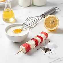 Serve the skewers well chilled. Arrange them on a light tray, drizzle just before serving, and provide an extra dressing on the side. Add small cocktail forks to the plate so guests can easily pick up the skewers without getting their fingers dirty.