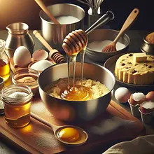 Add honey (80 g) and egg (60 g) to the butter and sugar. Mix the ingredients on low speed for about 1 minute until the mixture is smooth and slightly shiny. Add the dry spice mixture from step 2 and mix briefly again.
