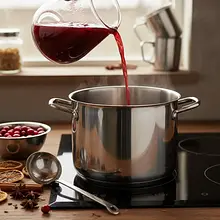Slowly heat the mixture, stirring gently with a wooden spoon from time to time. Watch the liquid – your goal is to bring it to a point where it is very hot, and steam begins to rise from its surface. Small bubbles will appear at the edges of the pot. When this happens, immediately reduce the burner to the absolute minimum. Cover the pot with a lid and let the drink steep gently for 15-20 minutes. During this time, the spices will release their full aroma, and the flavors will meld together.
