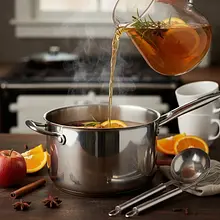 Place a pot on the stove over medium heat. Slowly heat the mixture until it is very hot, but do not bring it to a boil. Watch the surface of the liquid – as soon as you notice small bubbles and rising steam, immediately reduce the heat to the minimum. Cover the pot with a lid and let the drink gently 'infuse' for about 15-20 minutes. This process will allow all the flavors from the spices to slowly release into the juice.
