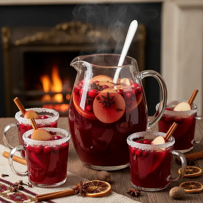 Oto kwintesencja jesienno-zimowego komfortu zamknięta w kubku – bezalkoholowy, korzenny poncz jabłkowo-żurawinowy. To rozgrzewający napój o głębokiej, rubinowej barwie i niezwykle bogatym aromacie, który wypełni cały dom zapachem świąt. Łączy w sobie naturalną słodycz tłoczonego soku jabłkowego z orzeźwiającą cierpkością żurawiny, a wszystko to otulone jest ciepłem korzennych przypraw: cynamonu, goździków, anyżu i świeżego imbiru. Każdy łyk to podróż przez smaki, która zaczyna się od słodkiego jabłka, przechodzi w nutę cytrusowej pomarańczy, a kończy na pikantnym, rozgrzewającym finiszu. Jest to idealna propozycja na chłodne wieczory, spotkania z rodziną i przyjaciółmi, a także doskonała, elegancka alternatywa dla grzanego wina podczas Wigilii czy Sylwestra. Podany na gorąco, udekorowany świeżymi owocami, staje się nie tylko pyszny, ale i niezwykle efektowny.