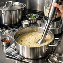Turn off the heat. Using an immersion blender (or transferring in batches to a countertop blender), blend the soup until smooth. Keep the blender at the bottom of the pot for a moment, then lift it while mixing the contents, moving the tip to achieve a uniform consistency. If the soup is too thick, add 100-200 ml of hot broth and stir.