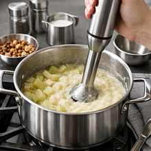 In a large pot (3–4 l capacity), melt the butter over medium heat. Add finely chopped garlic and sauté for 30–60 seconds until fragrant — be careful not to burn it (it should be light golden). Add the roasted vegetables (celery and onion) and the raw chopped potatoes. Pour in vegetable broth so that the vegetables are covered (about 1 liter). Bring to a boil, then reduce the heat to low and cook for 8–10 minutes until the potatoes are completely soft (check with a fork).