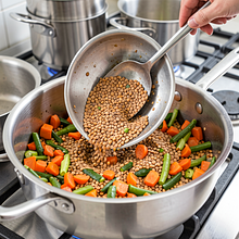 Preparation of vegetables and lentils