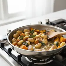 This dish is the essence of autumn comfort, perfect for chilly evenings when you're looking for something to warm both body and soul. Delicate, fluffy potato dumplings (gnocchi) are enveloped in a velvety burnt butter sauce that takes on an extraordinary, nutty aroma. The sweetness of caramelized butternut squash and the earthy, slightly peppery flavor of crispy sage leaves complete the dish. It is surprisingly simple to prepare, yet looks and tastes like it came from the best Italian restaurant. This vegetarian option will satisfy even the most discerning palates. Serve it as a main course for an elegant dinner or as a hearty, luxurious lunch in the middle of the week. Its golden-brown palette makes it a true feast for the eyes as well.