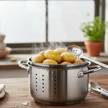 Drain the cooked potatoes and leave them in the pot for a moment to steam off. When they are still very hot, but cool enough to handle (you can use a clean cloth), peel them. Then immediately pass them through a potato ricer or mash them thoroughly with a masher until you have a smooth mixture without lumps. Spread the potato mixture on a large plate or countertop to cool completely as quickly as possible.