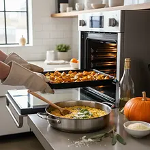 This dish is the essence of autumn captured on a plate. Creamy risotto with pumpkin, sage, and parmesan is a classic of Italian cuisine in a seasonal version. Its velvety, rich texture comes from the starch released by Arborio rice grains during slow cooking and from the addition of butter and parmesan. The sweetness of roasted pumpkin perfectly complements the earthy, slightly peppery aroma of fresh sage, creating an incredibly balanced flavor composition. The dish has a beautiful, intensely orange color that pleases the eye and promises a feast for the palate. Risotto is a dish that requires patience and attention, but the final result rewards every minute spent at the pot. It is perfect as an elegant main course for a dinner for two, a family lunch, or a gathering with friends. Serve it hot, sprinkled with an extra portion of parmesan and crunchy pumpkin seeds.