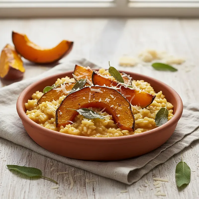 This dish is the essence of autumn captured in a single plate. Creamy, rich-flavored risotto made from Arborio rice envelops sweet, slightly nutty pieces of roasted Hokkaido pumpkin. The aroma of fresh sage, sautéed in butter until crispy, perfectly balances the buttery mildness of the dish, while high-quality Parmesan cheese adds a deep, salty umami flavor. Risotto originates from northern Italy and symbolizes patience in the kitchen, as its preparation requires constant stirring and gradual addition of broth. The result is a dish with an unparalleled, velvety texture that is both hearty and elegant. It is perfect as a main course for an autumn lunch, a romantic dinner, or comfort on a chilly day. Served in a warm, deep plate, garnished with crispy sage leaves and pumpkin seeds, it delights not only with its taste but also with its appearance.