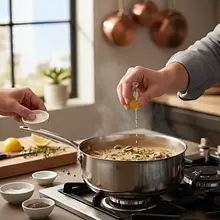 Pour 500 ml of hot vegetable broth over the sautéed mushrooms. Stir, scraping up all the tasty, browned bits from the bottom of the pan. Bring to a boil, then reduce the heat to the minimum, cover the pan, and simmer the sauce for about 15 minutes. During this time, the flavors will meld, and the mushrooms will become perfectly tender.