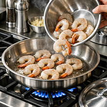 Increase the heat to medium-high and add the shrimp to the pan in a single layer. Sauté the shrimp for 1.5–2 minutes on one side — you will see that they start to change color to pink-orange and curl into a 'C' shape. Flip them and sauté for another 1–2 minutes until they are opaque and firm. Avoid overcooking — the shrimp should be tender, not rubbery.
