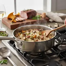 The best choice is a pot with a thick bottom that evenly distributes heat and prevents burning. Don't rush the frying of the onion – its slow caramelization builds the flavor base of the entire dish.