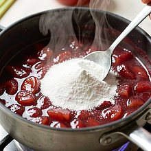 Thickening the filling: dissolve the cornstarch in 1–2 tablespoons of cold water, pour it into the hot rhubarb, and cook for another minute until the mixture thickens and becomes translucent. Remove from heat and set aside to cool — the filling should be slightly sticky, not completely liquid.