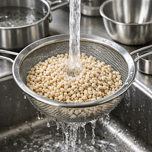 Rinsing the pearl barley reduces foaming and removes dust. Test the softness of the barley after 35 minutes – some batches may need a few extra minutes.