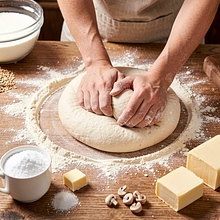 Use a large bowl or countertop. If you don't have a mixer, knead by hand for 8-10 minutes; the dough is ready when it springs back after being pressed with a finger. Do not add too much flour – it's better to lightly grease your hands with rapeseed oil than to add more flour.