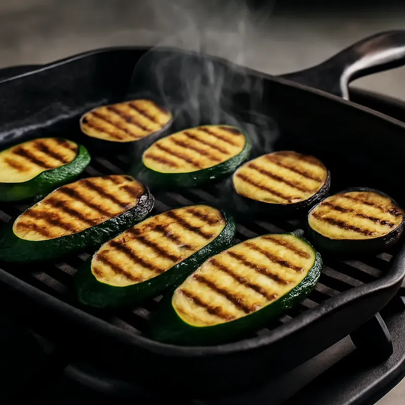 On a heated skillet, grill the slices of zucchini and eggplant for 2-3 minutes on each side. Set aside.
