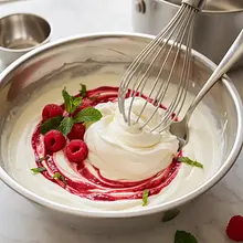 Just before serving, prepare the sauce. In a blender jar, place the raspberries (fresh or frozen), powdered sugar, and freshly squeezed lemon juice. Blend on high speed for about 30-60 seconds until you achieve a smooth, uniform sauce with an intense color.