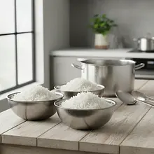 When the rice is ready and slightly cooled, divide it into three equal parts into three separate bowls. Add turmeric to the first bowl and mix thoroughly with a fork until the rice takes on a uniform yellow color. Add spinach puree to the second bowl and mix until a green color is achieved. Pour beet juice into the third bowl and mix until it turns pink. Stir each portion gently to avoid breaking the grains.