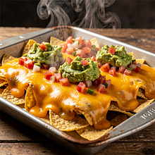 Nachos are best eaten fresh. If there are leftovers, store the chips and toppings separately in the fridge (chips in an airtight container, salsas and guacamole in closed containers). To refresh the nachos, heat them in the oven at 180°C for 5–7 minutes — avoid the microwave, as the chips will become soggy.