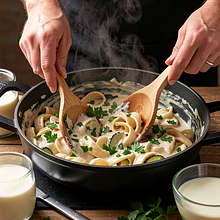 Store leftovers in a sealed container in the refrigerator for up to 2 days. When reheating, add 1–2 tablespoons of water or milk and heat on low, stirring to recreate the creamy sauce. Not recommended for freezing (the cream may separate).