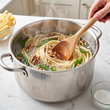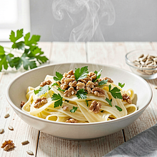 Bring a large pot of water to a boil (about 3–4 liters) and add 10 g of salt (about 1 teaspoon per liter). The water should be at a rolling boil before you add the pasta. Place the egg noodles into the boiling water, stir once to prevent sticking, and cook according to the package time minus 1 minute (usually 6–8 minutes). The pasta should be al dente: soft on the outside, slightly firm in the center.
