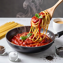 A simple, homemade pasta dish served with an aromatic tomato sauce and fresh basil. This classic Italian combination in a Polish version features juicy tomatoes stewed with onions and garlic, seasoned with salt and pepper, and a touch of sugar to balance the acidity. The dish is light and spring-like thanks to the fresh basil; it can be served as a main course for a quick family lunch or dinner. In an enhanced version, topped with grated yellow cheese. Visually: the intense red sauce, green basil leaves, and golden pasta create an appetizing contrast.