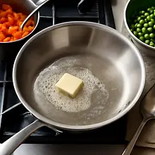 In a medium skillet, melt the butter over medium heat. Once the butter has melted and starts to foam slightly (but does not brown), add the chopped onion. Sauté for 3-4 minutes, stirring every 30 seconds, until the onion becomes translucent and soft.