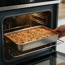 This cake is the essence of early summer captured in a rectangular form. Incredibly moist and fluffy thanks to the addition of buttermilk, which gives it a characteristic, delicate tang. The sour, bold flavor of rhubarb perfectly balances the sweetness of the cake, while the crunchy, buttery crumble with the addition of oats, almonds, and a pinch of aromatic cardamom creates an addictive, golden crust on top. The cake is simple to prepare, and its rustic appearance makes it look wonderful on any table. It’s the perfect bake for an afternoon tea in the garden, a family gathering, or as a sweet moment with a cup of coffee. Its taste evokes memories of carefree, sunny days, and the aroma wafting during baking fills the whole house with warmth and the promise of a delicious dessert.