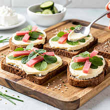 Wash the rhubarb, trim the ends, and cut the stalks into thin strips (about 3-4 mm wide). Place the chopped rhubarb in a bowl. Add sugar and apple cider vinegar. Stir with a spoon so that the sugar evenly coats the pieces. Let it sit for 15-20 minutes — the sugar and vinegar will soften the rhubarb and create a light brine. After marinating, drain the rhubarb in a sieve, leaving a tablespoon of the brine for possible sweetening of the paste.