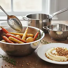 If there are leftovers, store the purée and roasted vegetables separately in airtight containers in the fridge for up to 3 days. Keep the crispy grains in a jar at room temperature. It's best to reheat the vegetables in the oven (180°C for 10-15 minutes) to regain some of their crispiness. Heat the purée in a saucepan over low heat, adding a little milk or butter.