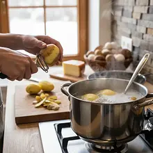 While the sauce is simmering, prepare the potatoes. Peel them, wash them, and cook in salted water until completely soft (about 20-25 minutes). Check with a fork - it should go into the potato without any resistance. Drain them very thoroughly and set aside for a few minutes to allow excess water to evaporate. While still hot, pass the potatoes through a potato ricer or mash them very thoroughly with a masher until smooth and lump-free. Set aside to cool slightly for about 10-15 minutes.