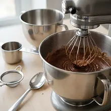 Add the mixed dry ingredients to the chocolate-egg mixture. Using a mixer on the lowest speed or a spatula, mix just until the ingredients are combined and no dry flour is visible. Do not mix for too long.