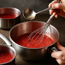 Add 2–3 tablespoons (30–45 g) of hot gelatin to about 80 g of strawberry puree, mix vigorously to temper the gelatin (this will prevent lumps from forming), and then pour the mixture back into the remaining puree and mix thoroughly.