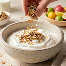 Finally, optionally drizzle each serving with honey (about 7.5 g = 1/2 tablespoon per serving) and sprinkle with walnuts (about 10 g per serving). The honey adds sweetness, while the walnuts provide crunch and heart-healthy fats.