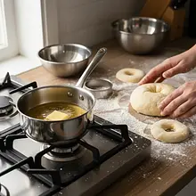 Start by activating the yeast. In a small saucepan, heat 100 ml of milk. It should be slightly warm, like bath water for a baby (about 35-37°C). Milk that is too hot will kill the yeast! In a medium bowl, crumble fresh yeast, add 1 tablespoon of sugar and 1 tablespoon of flour. Pour the warm milk over everything and gently mix with a fork until the ingredients combine into a smooth paste. Cover the bowl with a clean kitchen towel and set it in a warm, draft-free place (e.g., near a radiator or in a slightly warmed oven) for about 15 minutes. The prepared starter should double in volume and be covered with a thick foam. This is a sign that the yeast is active and ready to work.