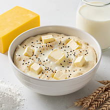 Take the butter out and keep it in the fridge until use — it must be cold. Preheat the oven to 200°C (top-bottom) or 190°C (fan). Prepare a large bowl, a cheese grater, a knife or scraper, a sheet of baking paper, and a baking tray. Grate the yellow cheese on the fine side of the grater and set it aside in a bowl. Weigh all the ingredients according to the list.
