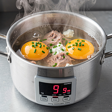 Prepare the eggs. Place 2 eggs in a medium pot and cover them with cold water so that the water is 2-3 cm above the eggs. Put the pot on high heat and bring to a boil. Once the water starts boiling, reduce the heat to medium and cook uncovered for 9 minutes to achieve hard-boiled eggs with a well-set yolk.