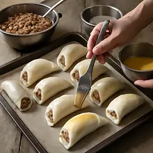 Arrange the pastries on a baking sheet lined with parchment paper. Brush them with beaten egg for a golden color.