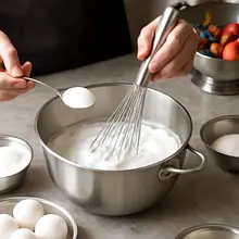 Take the egg whites out of the fridge a few minutes before whipping, but whip them while they are still cold. Pour the egg whites into a bowl and start beating with a mixer on medium speed until soft peaks form (about 1-2 minutes).