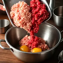 Meatloaf is a classic, moist, and aromatic dish made from ground meat, served hot or cold as a snack. It originates from Polish cuisine as a homemade way to use ground meat and bread soaked in milk — this gives it a delicate texture and juicy center. Perfect for the Christmas Eve dinner table as a cold snack on a sliced board, served with pickled cucumbers, horseradish, and fresh parsley. Visually: a golden crust after baking, a uniform, compact shape, with evenly distributed ingredients inside. Taste: pronounced due to mustard and marjoram, with a slight sweetness from sautéed onions and possibly a hint of cranberry as a contrasting accent.