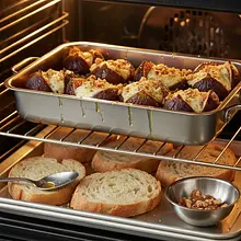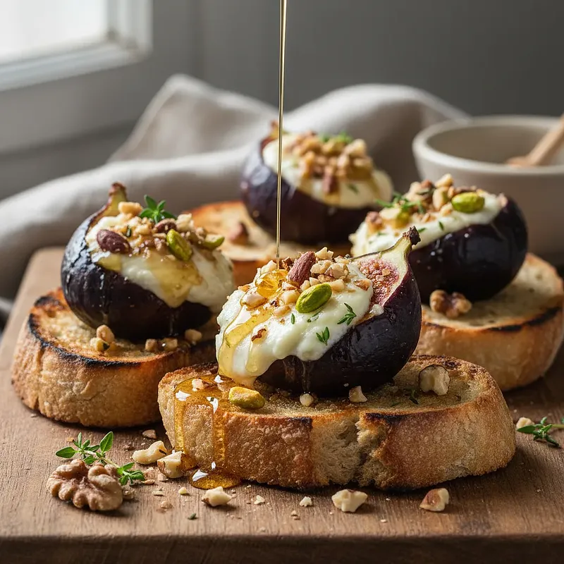 Rozgrzej piekarnik do 190°C (tryb góra-dół). W tym czasie przygotuj figi. Umyj je delikatnie pod zimną, bieżącą wodą i osusz ręcznikiem papierowym. Odetnij twardą końcówkę z ogonkiem. Następnie postaw figę pionowo na desce do krojenia i natnij ją ostrym nożem na krzyż, od góry, na głębokość około 2/3 owocu. Uważaj, aby nie przeciąć figi do końca – powinna tworzyć 'kwiatek', który można lekko rozchylić.