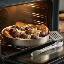 Zacznij od nagrzania piekarnika. Ustaw go na 190°C z funkcją grzania góra-dół. Przygotuj małe naczynie żaroodporne lub blaszkę wyłożoną papierem do pieczenia. Naczynie powinno być na tyle duże, aby figi zmieściły się w jednej warstwie, nie dotykając się nawzajem.