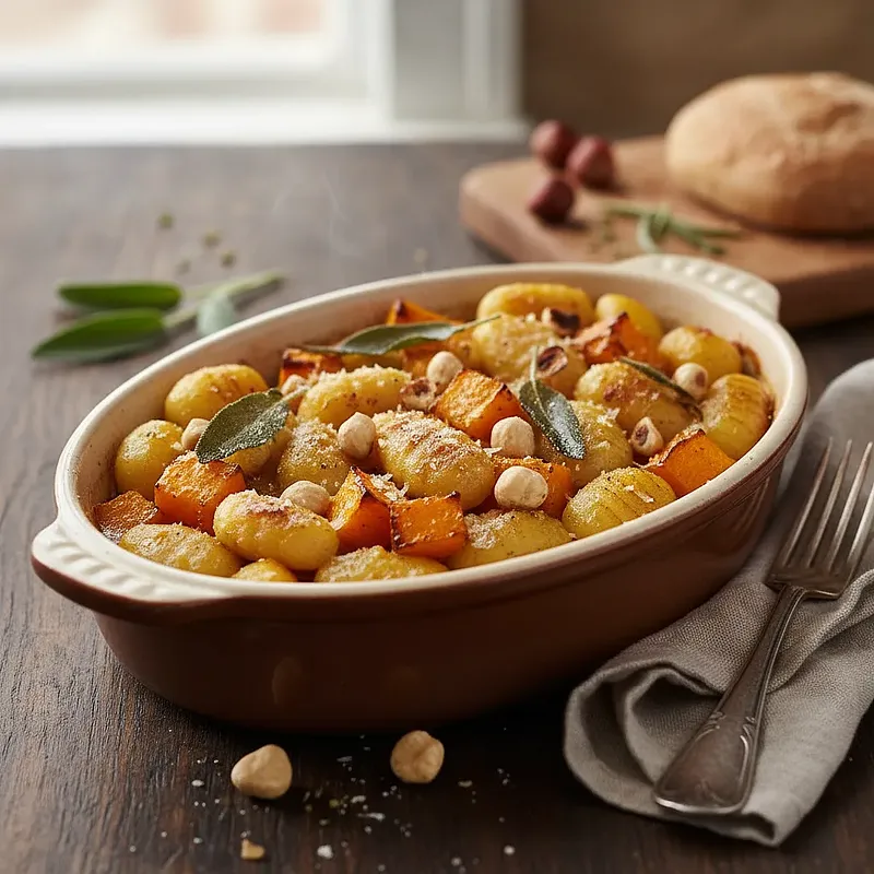 Place the dish back in the oven preheated to 200°C and bake for another 15-20 minutes. The dish is ready when the gnocchi are fluffy, slightly browned, and crispy on the edges. The pumpkin should be completely soft and gently caramelized.