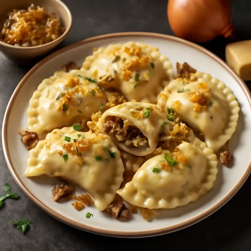 Pierogi with cabbage and mushrooms are a classic Polish dish that delights with its rich texture and deep flavor. The smooth dough envelops an aromatic filling of sauerkraut and dried mushrooms, creating a harmonious composition of tastes. Perfect for the holiday table, but also excellent as an everyday meal. Crispy on the outside, soft and juicy on the inside, these pierogi evoke memories of traditional home-cooked dinners.
