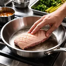 Place the breasts skin-side down in a cold skillet (this method will allow the fat to gradually render). Turn the burner to medium-high. Cook for 8-12 minutes, gently pressing the meat with a wide spatula and releasing the rendered fat; the skin should shrink and become golden and crispy. Pour off the excess fat into a bowl (you can save it for other dishes). Flip the breasts to the meat side and cook for 3-5 minutes, until they reach an internal temperature of about 58-62°C for medium doneness. If you don't have a thermometer, press the meat with your finger: it should be firm but not hard.