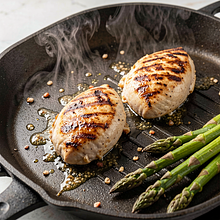 Prepare the marinade: in a large bowl, place natural yogurt (300 g). Peel and press the garlic (15 g) directly into the yogurt. Grate (or finely chop) fresh horseradish (20 g) and add it to the bowl. Pour in lemon juice (30 ml), add honey (30 g), rapeseed oil (30 g), sweet paprika (4 g), salt (2 g), and black pepper (1 g). Mix with a whisk or spoon until you achieve a uniform, thick consistency — the marinade should be creamy and smooth, without any lumps of yogurt. Taste and adjust with a little salt or honey if needed.