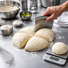 Place the dough on a lightly floured surface and start kneading. Knead vigorously for 8-10 minutes: stretch the dough to the side, fold it in half, and press with the inner part of your hand. Repeat the movements, turning the dough a quarter turn each time. If you are using a mixer, knead for 6-7 minutes with a dough hook on medium speed.