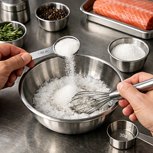 Prepare the curing mixture: in a bowl, mix 30 g of salt and 30 g of sugar (from the total amount) until combined. Wash, peel, and grate the beetroot (200 g) using a large grater or slice it into very thin pieces. On a cutting board, lay out plastic wrap, sprinkle a thin layer of the curing mixture, and place the salmon fillet skin-side down (if it has skin - remove it with a sharp knife or ask the seller). Evenly spread the grated beetroot on the salmon, sprinkle with the remaining curing mixture, and top with 30 g of fresh dill. Wrap tightly in plastic wrap and weigh down with a board and something heavy (e.g., a pot of water). Set aside in the refrigerator for 12-18 hours (optimally 14 hours).