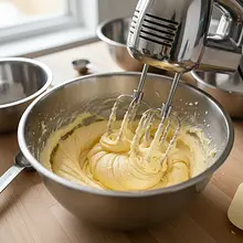 Reduce the mixer speed to medium. Add the eggs one by one, waiting for the previous one to fully incorporate into the butter mixture. After adding each egg, mix for about 1 minute. Then add the zest of two lemons and the juice of one lemon. Mix briefly to combine.
