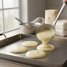 The recipe is inspired by Japanese 'soufflé pancakes', which have gained popularity worldwide due to their extraordinary, fluffy texture. Traditional Japanese versions are often cooked in special metal rings to achieve perfectly even and tall shapes. This version is simplified so that anyone can make them at home without specialized equipment.
