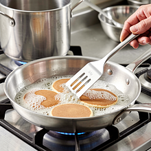 Fry the pancakes for 2–3 minutes on one side. Flip the pancake with a spatula when small bubbles appear on the surface, the edges are set, and slightly golden. Fry the other side for 1.5–2 minutes until you achieve a golden color. If the pancakes are browning too quickly, reduce the heat by half a notch.